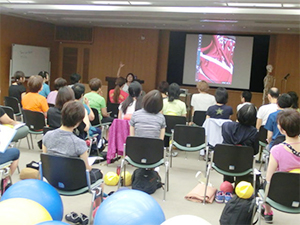 今回は特別に(株)明治から石黒真弓さんが参加してくださいました。石黒さんはフィットネス指導者の真剣に学ぶ姿勢にとても感心されたようです。