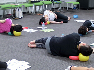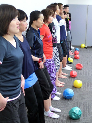 エクササイズをこなすうちに徐々に力の抜けるレベルが深まっているのがわかります。普段の指導ではできない、自分の身体と真剣に向き合うこの機会で、身体感覚をさらに高めることができたでしょう。聴講で参加のJSA認定指導者たちも「より深く理解できた!」と笑顔でした。