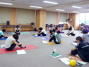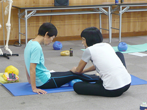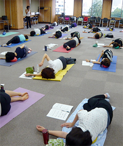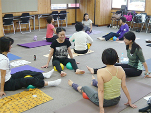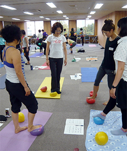 JSA養成コースの2日目はボールエクササイズのバリエーションを学びます。身体のポジションにボールのポジションが加わるのでエクササイズの種目がおどろくほど増えます。そこに目的や強度変換など様々な要素が入るので、エクササイズバリエーションが無限に広がることも理解します。ドリルを通して、身体とボールの位置を変えながらどんどんエクササイズをこなし、深く考察していきました