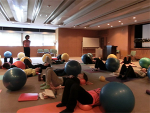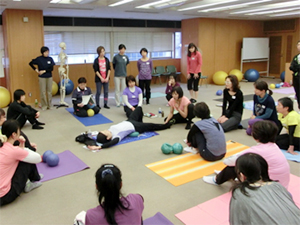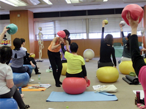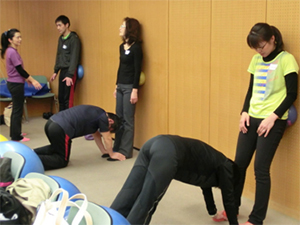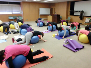 JSA認定インストラクターがほとんどの中、JSAボールエクササイズが始めての方も数人参加。関東はもちろん、札幌・青森・岩手・新潟・福島・長野・静岡・宮崎など遠方からの参加も多く、みなさんの熱心さが充実した6時間に仕上げました。盛りだくさんのセミナー内容にもかかわらず、スポンジのように何もかもをどんどん吸収してく様にうれしくて、私は大興奮していました。おかげで6時間の間トイレに行くのも忘れた!