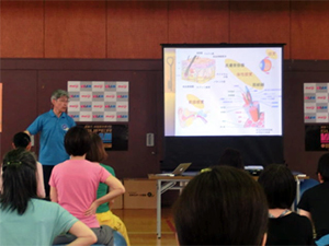 トップバッター木塚先生は科学の知識から「感覚とは動かないと磨かれない」こと、また、「常に感覚は変化し狂う」ことなど、非常に分かりやすく説明してくださいました。巧みなジョークがバンバン入る、笑いが絶えない絶妙な間で全員がグイグイ引き込まれました。とても楽しかった!