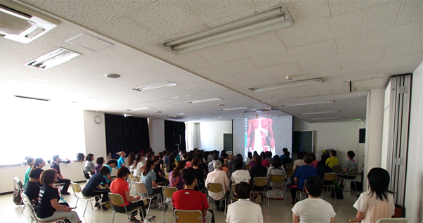 数あるセッションの講座でいち早く満席になり、キャンセル待ちがずいぶん出てしまったクラスです。あとからたくさんの人たちに「入れなかった」と言われました。75人の参加、スライドに密集して座られる迫力に、指導者も一般の方も学ぶ意欲は同じだということに喜びを感じました。