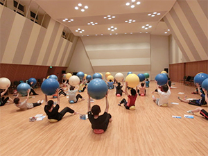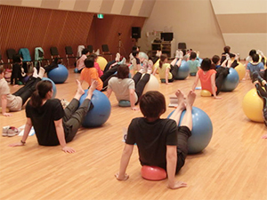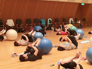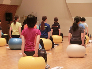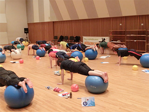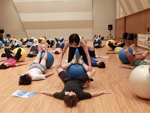 Gボールインストラクター認定講習会はボールエクササイズの面白さを体得しながら、同時に幅広いエクササイズバリエーションも学びます。3人の講師から幅広い活用方法が提案されるので非常に充実した内容の講習会です。