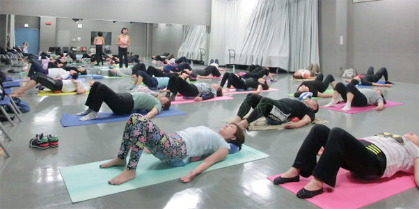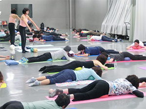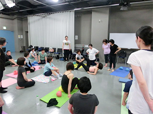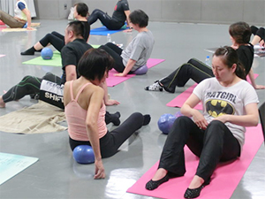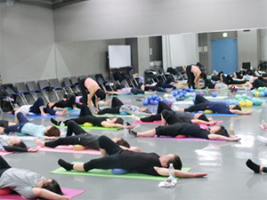 JSAボールエクササイズの理論や目的などを説明しながら、レッスンはスムーズに展開できました。みなさんの集中力に感謝です!