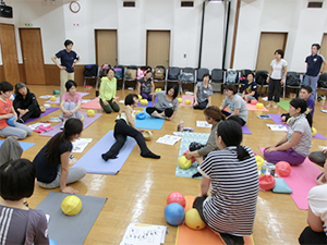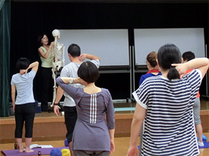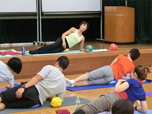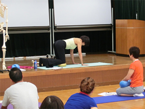 京都のJSA養成コース終了後すぐ、東京のJSA養成コースがスタートです。今回はJSAボールエクササイズ初めての方が多かったので、従来のフィットネスと異なる基礎理論と実技をじっくりていねいに進めていきました。筋肉ではなく関節に働きかける、骨運動学ではなく関節運動学に基づくなど、難しい理論を身体で体感し、理解していく、皆さんの身体感覚の素晴らしさに感動しました。そして、皆さんの意識レベルの高さを大変嬉しく思いました。