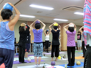 バリエーションの要素を学びながら、どれほど多種のエクササイズを作り出せるか、実際に動いて体験しました。身体のポジションに対してボールの位置を変換するだけで、全く異なるエクササイズが生まれます。理論の理解だけではなく、ボールの特性を活用しながら、リセットや強化エクササイズを思うがままに組み込めるおもしろさを実感できたようです。