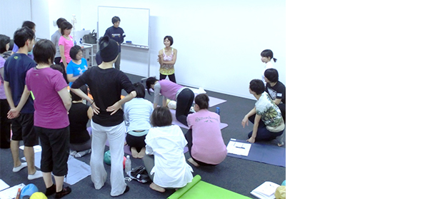 養成コース終盤、指導スキルを学ぶこの日は、考えて、それを言葉にして、分かりやすく対象者に伝えるための、たくさんのドリルをこなします。正しい情報、正しいポジション、正しい動きだけではなく、気づかせたり、やる気にさせるためのスキルやコツも習得します。この指導スキルも身体感覚と同じで、これからの指導経験で育てていくものです。なんでも簡単にできることなんて無いけど、自分のなりたい指導者になることはできるので、私たち自身が仕事(運動指導)を楽しいと思える学びにしたいと思っています。
