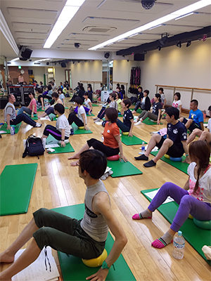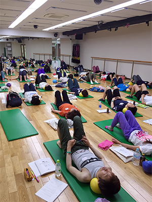 座位ポジション一つでもボールの位置の変化でエクササイズが異なります。それを一つずつ動いて体感し身体で理解していくので、ものすごいエクササイズ量になります。ほんとうにいっぱい動きました。3ヶ月分くらいのエクササイズをやった気分です。皆んなでがんばりました!