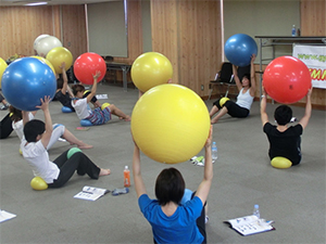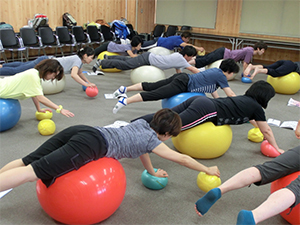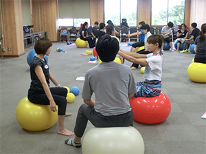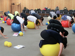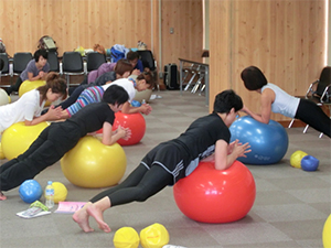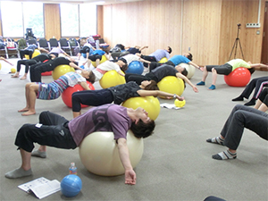 身体のポジションとボールの位置に始まるバリエーション要素を一つ一つ体験していきます。学ぶほど多くのエクササイズがあふれるようにでき上がります。それを対象者の目的や身体能力にマッチするように提供できることが指導者の目的です。バリエーションは変化、エクササイズをどのように変化させるか、真剣に動いて、感じて、考えて、また動いて、脳も身体もフル回転の6時間でした。皆さんの集中力と理解力がすごかった!ありがとうございました!