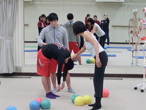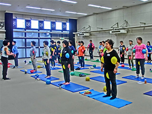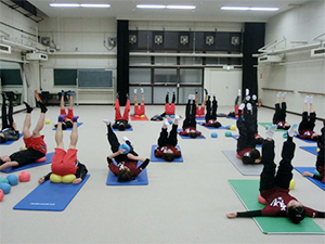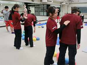 続いて17:30〜19:30まで柿本先生率いる福岡大学新体操部に研修させてもらいました。あらゆるスポーツの基盤となる姿勢・呼吸・中心軸などを練習するほど、新体操の技術も上がることを、しっかり体感してほしいと強く願いながらがんばりました。