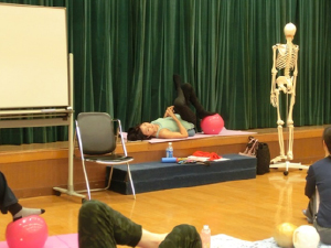 ギムニク30の特性を身体で体感していきました。脚を乗せてゆすってもらうととても気持ちいいんです。イス座もできるので正しい姿勢を感覚でとらえることもできます