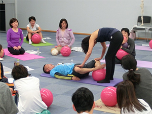 ギムニク30を活用するメリットをハンズ・オンでも練習、ギムニク30を転がすと驚くほど股関節をダイナミックに動かせることも体感