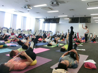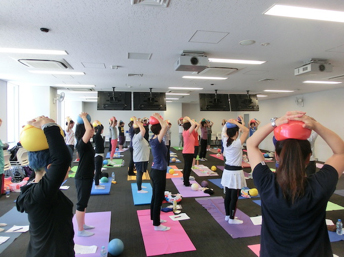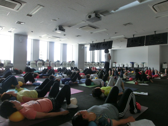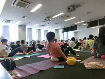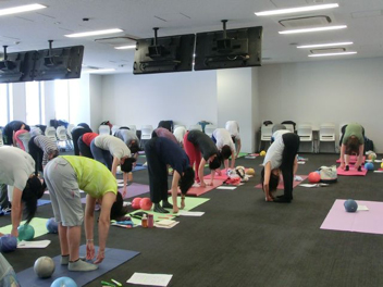 誰もが簡単にできること、気持ちいいと感じること、実感できること、場所や時間設定など、指導者から提案できることはたくさんあります。それを実際にどのようにすれば良いか学び、実技ではJSAボールエクササイズを通して体感しました。