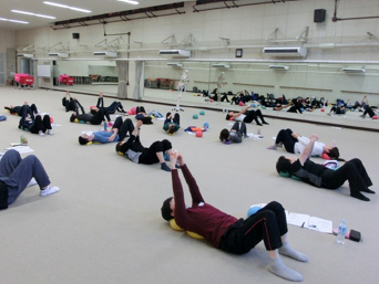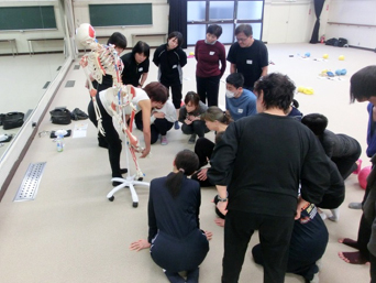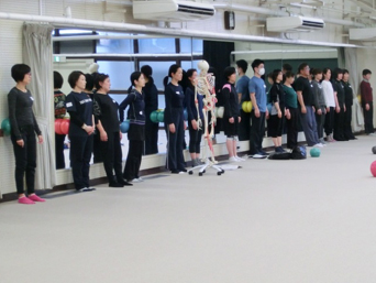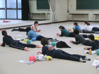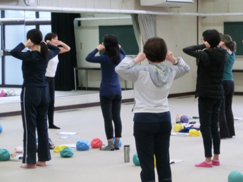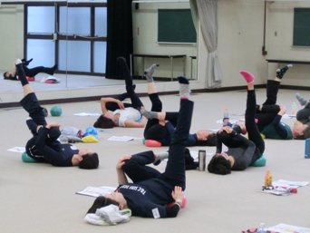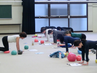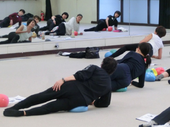 2年ぶり福岡でのJSA養成コースです。身体について学びたいと思ってきた人から、すでに認定を取得している指導者まで、今回も多彩なメンバーが集まりました。福岡はもちろん、宮崎・熊本・大分・佐賀・長崎・山口からの参加です。福大のこの部屋は広くて鏡もあり大変充実しています。また、ボールもたくさんあるのでポジションによって様々なボールの使い方が体験できます。1日目は関節運動学の理論を理解し、また、10カ所の主要関節のエクササイズを学びます。たった6時間でやってしまうのですから、皆さんが非常に集中しているのが分かりました。ボールの気持ちよさや身体の軽さを知識とともにしっかり体感できるようにみんなで頑張りました。
