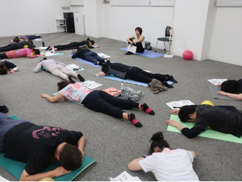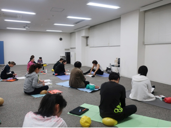今日はJSAボールエクササイズ認定試験です。試験は実技と筆記があります。皆さん、学生の時以来、試験というものから遠ざかって久しいのが当然なので、緊張感が高まります。全員が普段の力を存分に発揮できるように、自信を持って挑めるように、願いも込めて私も頑張りました〜〜!