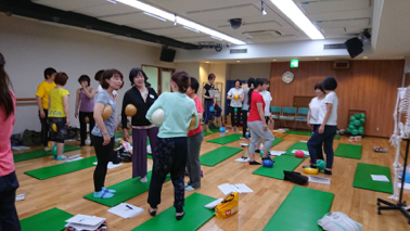 ドリルをたくさん行いました。ポジションごとにボールを当てる位置を考え、それがどんなエクササイズになるか、強度や難易度をどのように調整するか、そのエクササイズの目的は?身体能力や体型によっても効果的なエクササイズになるよう修正します。たった6時間で学ぶにはあまりにも厳しい!しかし、参加された皆さんの情熱と勢いであっさり乗り越えました。すご〜い!