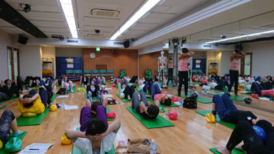 JSAボールエクササイズ認定インストラクターの幸代ちゃんが突然の病に、そこで、みんなでエールを送ることに!幸代ちゃんに仲間みんなで笑顔の応援を届けました!