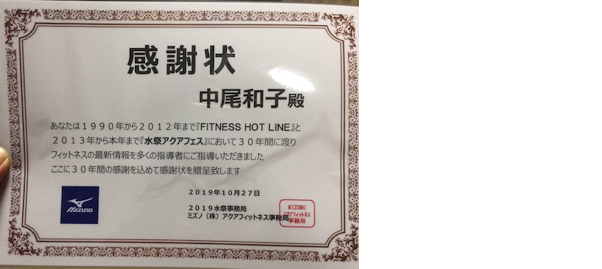 ミズノのセッションは名前や形も変わっていますが、今年で30周年を迎えました。30年間皆勤だった私はワークショップが始まる前に主催者の金谷さんから感謝状をいただきました。そして、みんなから大きな大きな拍手をもらいました。継続してくださったミズノに、スタッフに、参加してくれた仲間に、あらためて感謝の気持ちがあふれました。心からありがとうございます。