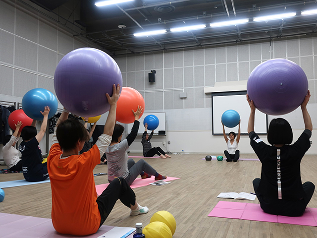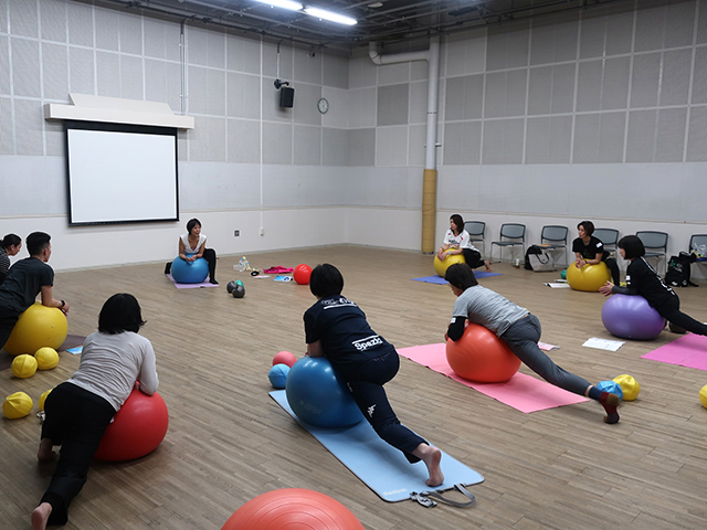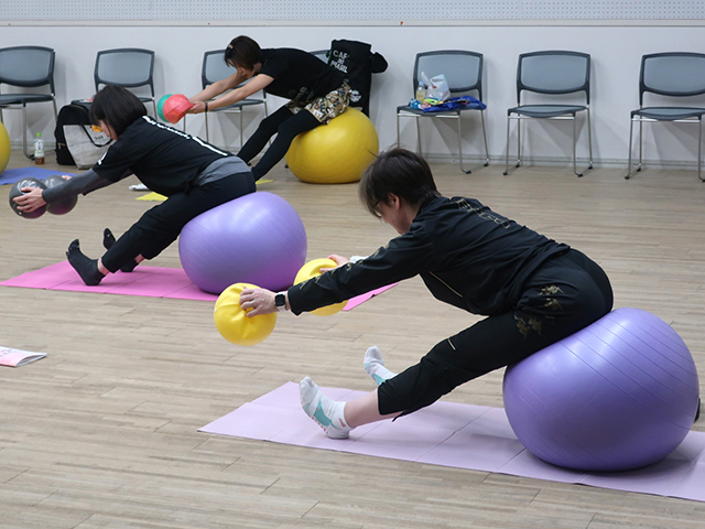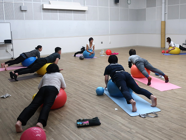 身体のポジションに対して、ボールをどこに置くかでエクササイズバリエーションはぐんと増えます。そこに速度・可動域・頻度などの変換で狙い通りのエクササイズが出来上がります。ボールの特性と威力を体感しながら、皆さんの集中力は最後まで続きました。素晴らしかったです!