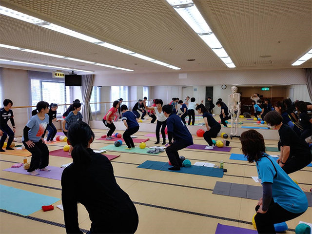 ボールの位置や身体のポジションを変換するだけでエクササイズ内容は変わり、どんどんエクササイズは増えていきます。