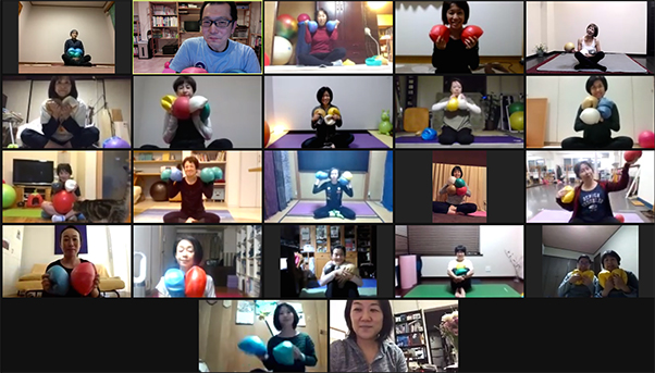 「身体を引き上げる感覚をつかむ」これをテーマに組み立てました。ウォーミングアップから背骨に集中しました。椎骨1つ1つに意識を向けて丁寧に動かすとふっと背が高くなったような伸びやかさと軽さを感じます。感覚は数字で表せないから何とももどかしいのですが、参加の皆さんそれぞれが気持ちいいと感じる程度を高められたらと強く思っています。