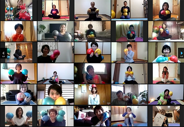 今日の「手関節と足関節」は身体の末端でありながら、とても重要な役割があるので、ボールでできるエクササイズバリエーションを動いて体感しました。また、ブレイクアウトルームでプレゼン練習やエクササイズ順序を考えました。