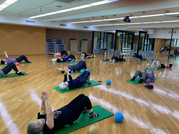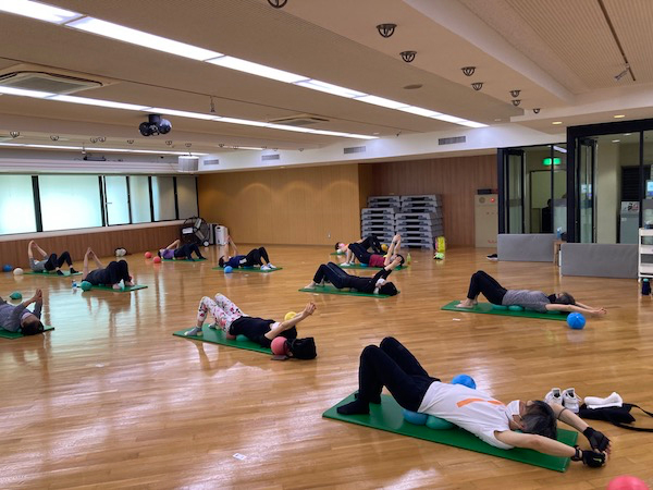 ボールの置き方や個数を変えると狙う関節が同じでも身体感覚はずいぶん異なります。不安定さが増すとバランス感覚や体幹が鍛えられ、安定するほどボールの弾力に包まれる気持ち良さを感じます。皆さんの感じるレベルが高くなっているので、大変細やかなキューイングを出すことができました。うれしかったです!次回も大いに楽しみたいと思います。(今回の写真はレッスン後半部分だけです。)