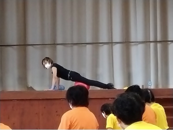 午後から使うギムニク30も用意されていて、会場全体がボールで華やかな雰囲気になっていました。身体が軽く感じることを目指して、さらに集中して身体に意識を向け、ていねいに動きました。