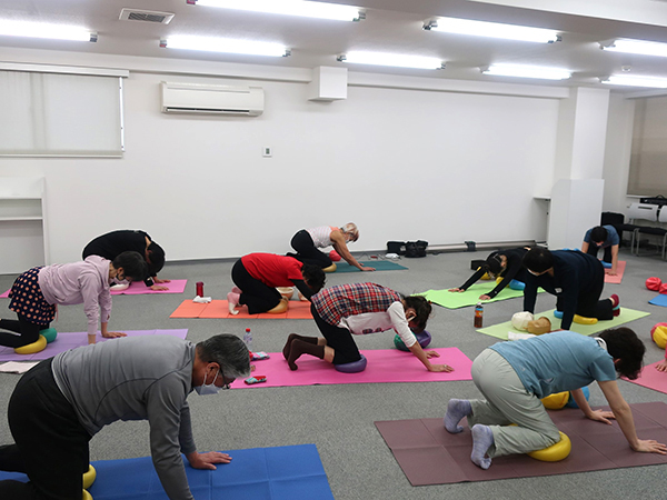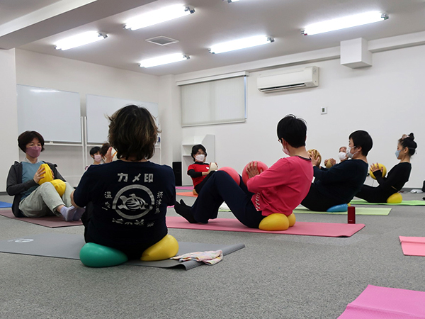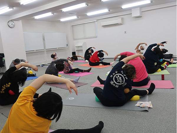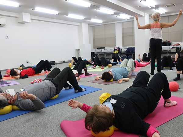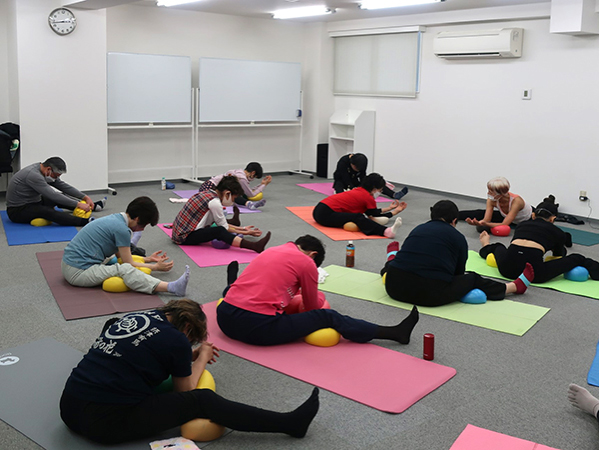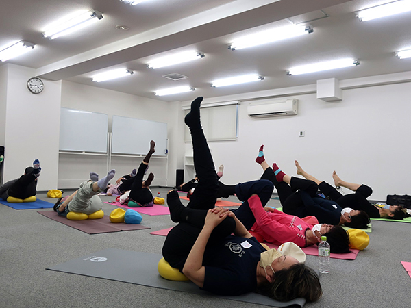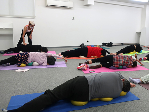 坐骨体操ではじまり、様々なポジションでボールの弾力に包まれ動きました。ボールが身体をゆるめてくれるので、きれいな骨の並び(アライメント)で丁寧に動けば、自分では気づけない緊張が消え、身体が軽く感じ、伸びやかに動けます。使ったように身体は変わることを深く感じる至福の時間になりました。