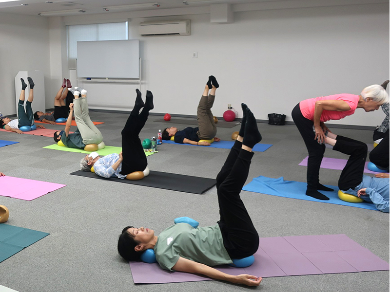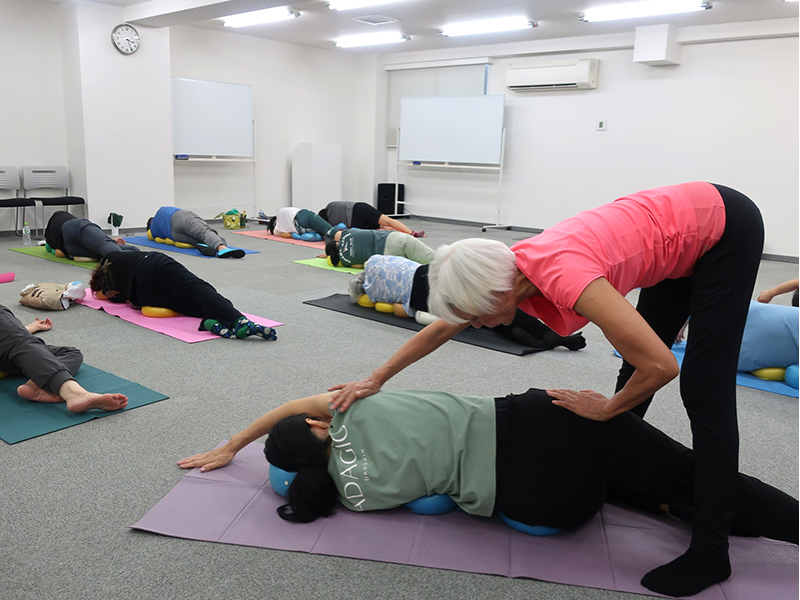 東京の開催は懐かしい人達と再会できるので、うれしくて、楽しくて、いつもはしゃぎたくなります。JSAが久しぶりでも楽に動けて、気持ちいいと感じてもらえるようにがんばりました。JSAボールエクササイズが大好きな皆さんなので身体への意識レベルが高く、エクササイズが進むにつれ、身体がやわらかくなって、動きが軽やかに変化いていく様子がとてもよくわかりました。