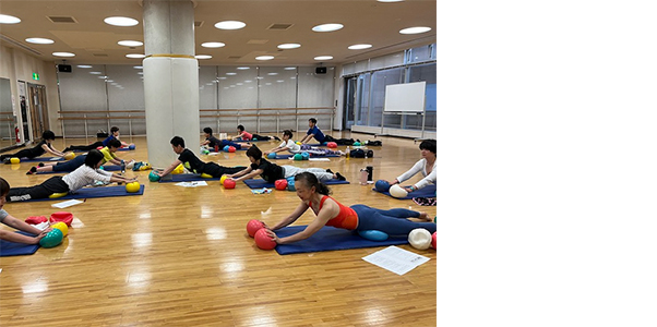 ボールの弾力が関節包や周りの組織をゆるめ、関節面の動きをなめらかにします。空気圧を変えてボールの弾力を変換すると驚くほど刺激が変わります。その変化が今まで経験したことがない心地よい感覚に導きます。エクササイズのルーティンも含めボールの空気圧と配置の変換で身体は多彩な感覚に次々に浸っていきます。それに連れて皆さんの可動性も増していくのがわかりました。