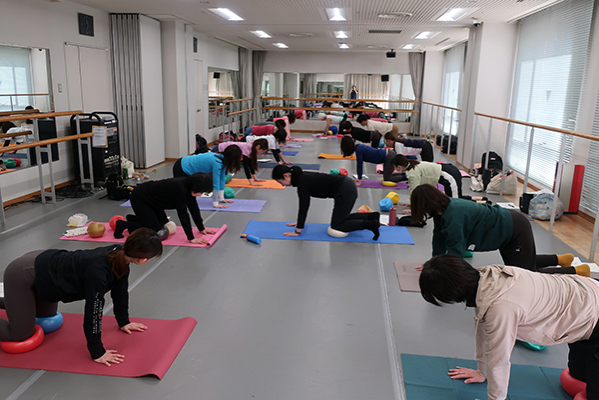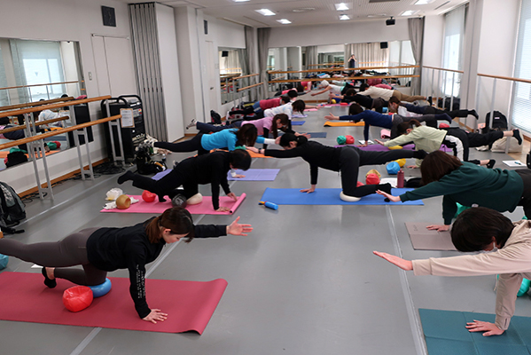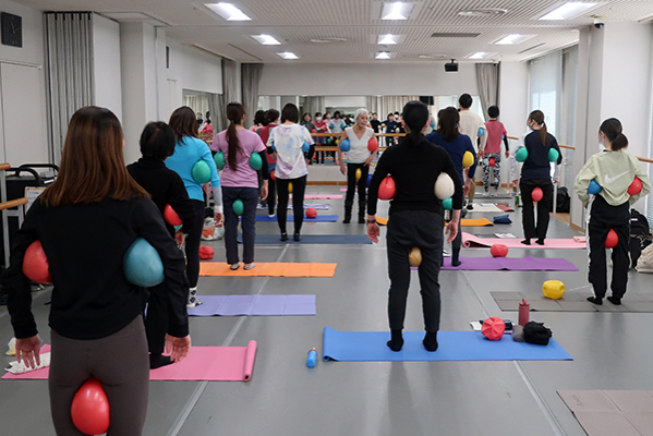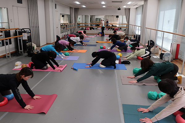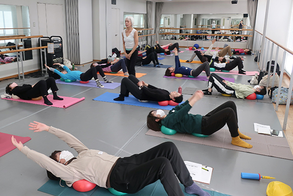 ボールの空気圧や位置と様々な組み合わせによる動き意識の変換、それは変化に富んだ痛快な刺激です。写真だといつもと変わらないJSAエクササイズにしか見えませんが、いやいや、ほんとうに多彩な身体感覚を体験しました。