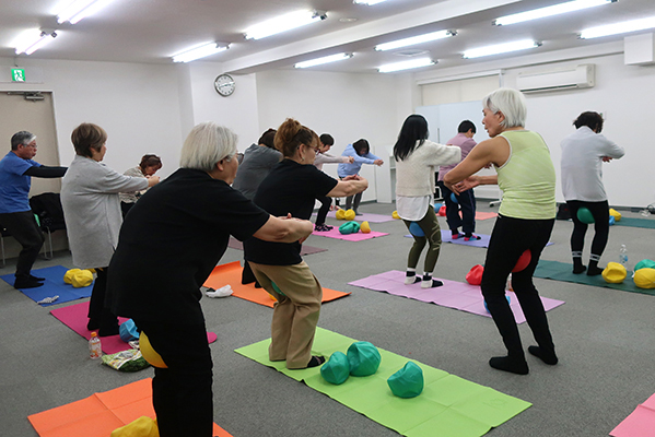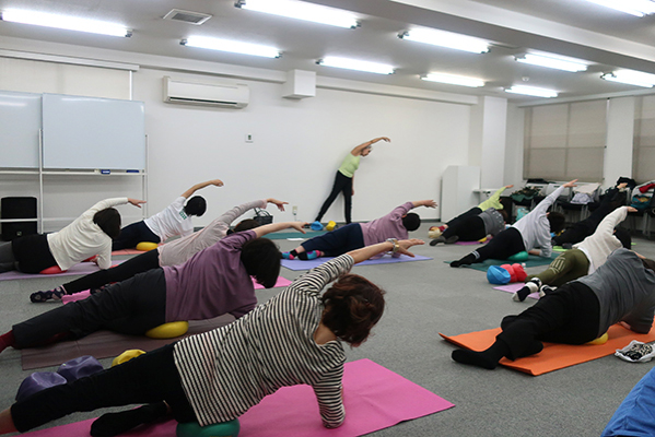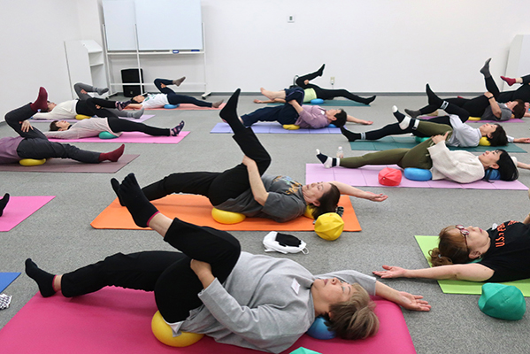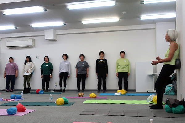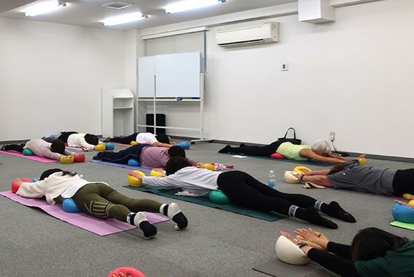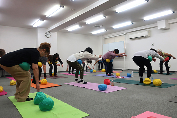 半年に一度のこのレッスンでは東京の懐かしいメンバーさん達に会えるので、いつも楽しみすぎておかしいくらい興奮します。今回は和太鼓で馴染みのJSAが初めての方たちも参加してくださいました。JSAボールエクササイズはより快適に楽に動ける身体を目指して自分と向き合います。意識して動きながら、身体がどのように動いていて、身体をどう感じているのか、身体感覚を鋭くつかみ取っていきます。知らなかった自分の発見であり、新感覚との出会いです。